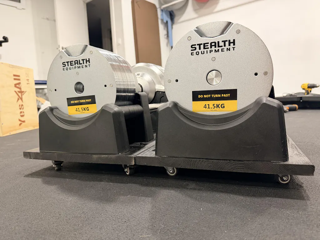 Dial to your target weight and go. Smooth, fast adjustments from 4kg to 41.5kg — no pins, no collars.