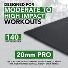 Our most popular tile, PRO 20mm is a versatile and multi-functional solution for medium to heavy-impact exercise. It allows for weight drops up to 140kg and is perfect for all-rounders, gym users who train regularly with both equipment and weights as well as functional training.