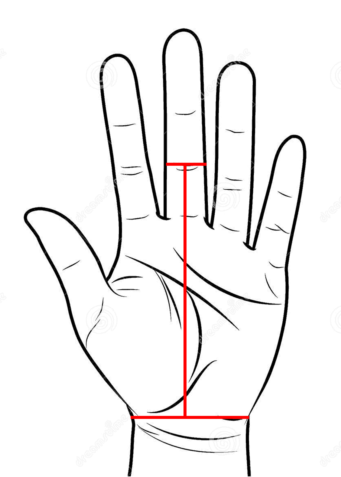 Measure the distance from the crease of your wrist to the crease of your 2nd finger joint (see image for reference)